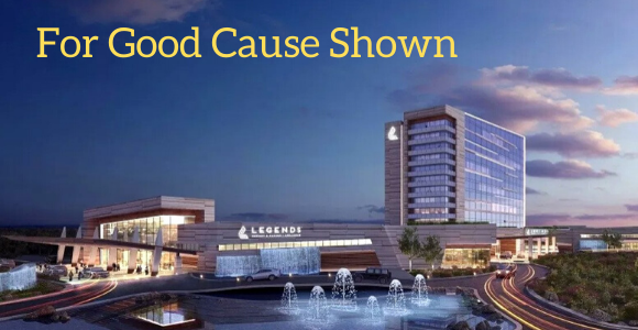 - On August 15, Scott Richardson, attorney for Cherokee Nation Businesses (CNB) and Legends Resort & Casino, in a letter that accompanied their August license application, made a good case for accepting that application for good cause shown, writing: