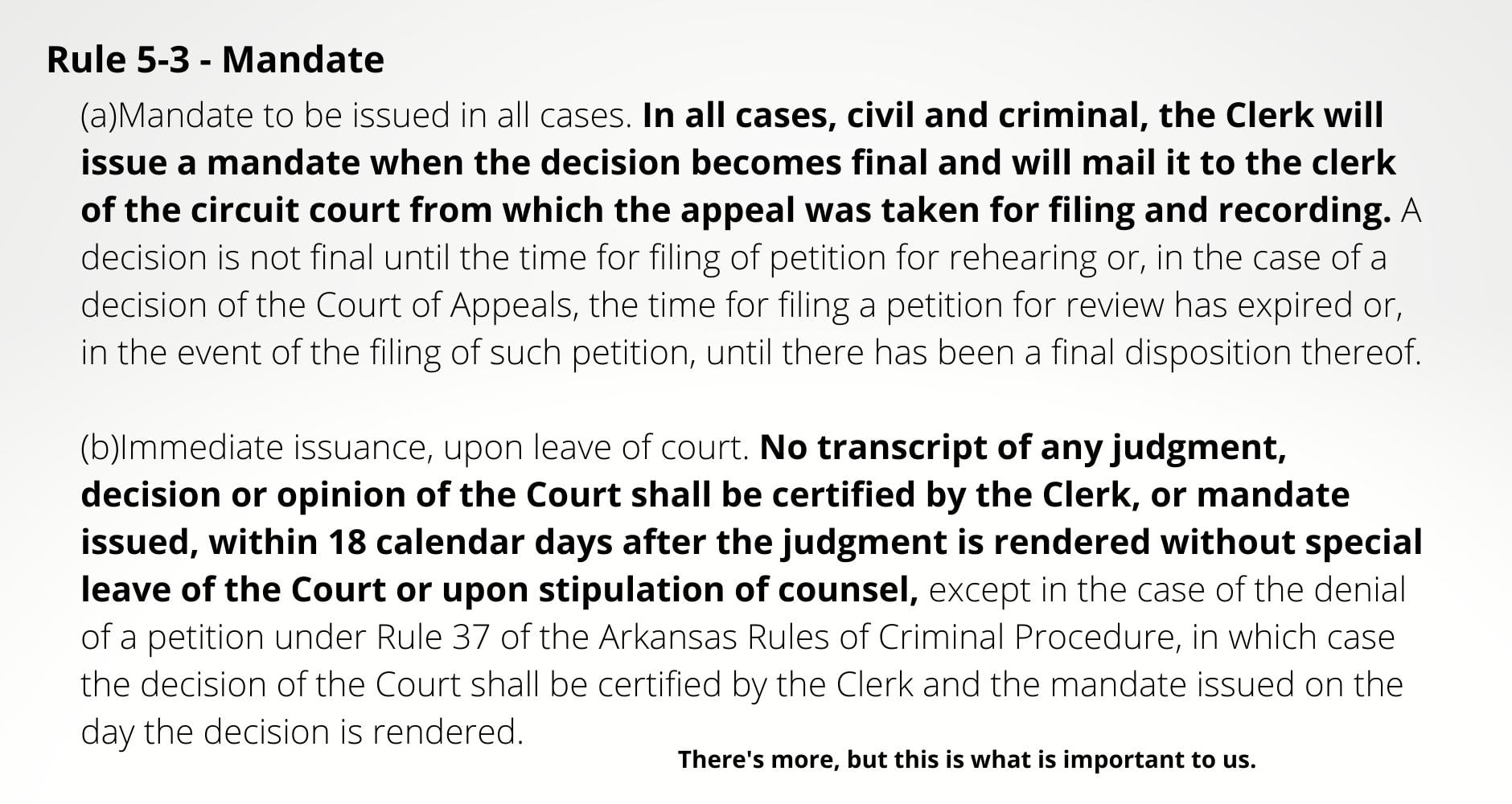 So, looking at this WE may not see anything today. It looks to me like 18 days is the period that Gulfside had for asking for a rehearing. If that’s the case, they have until the end of the day after which time the decision is final and the Clerk can mail the mandate to Tim Fox’s court for filing and recording.