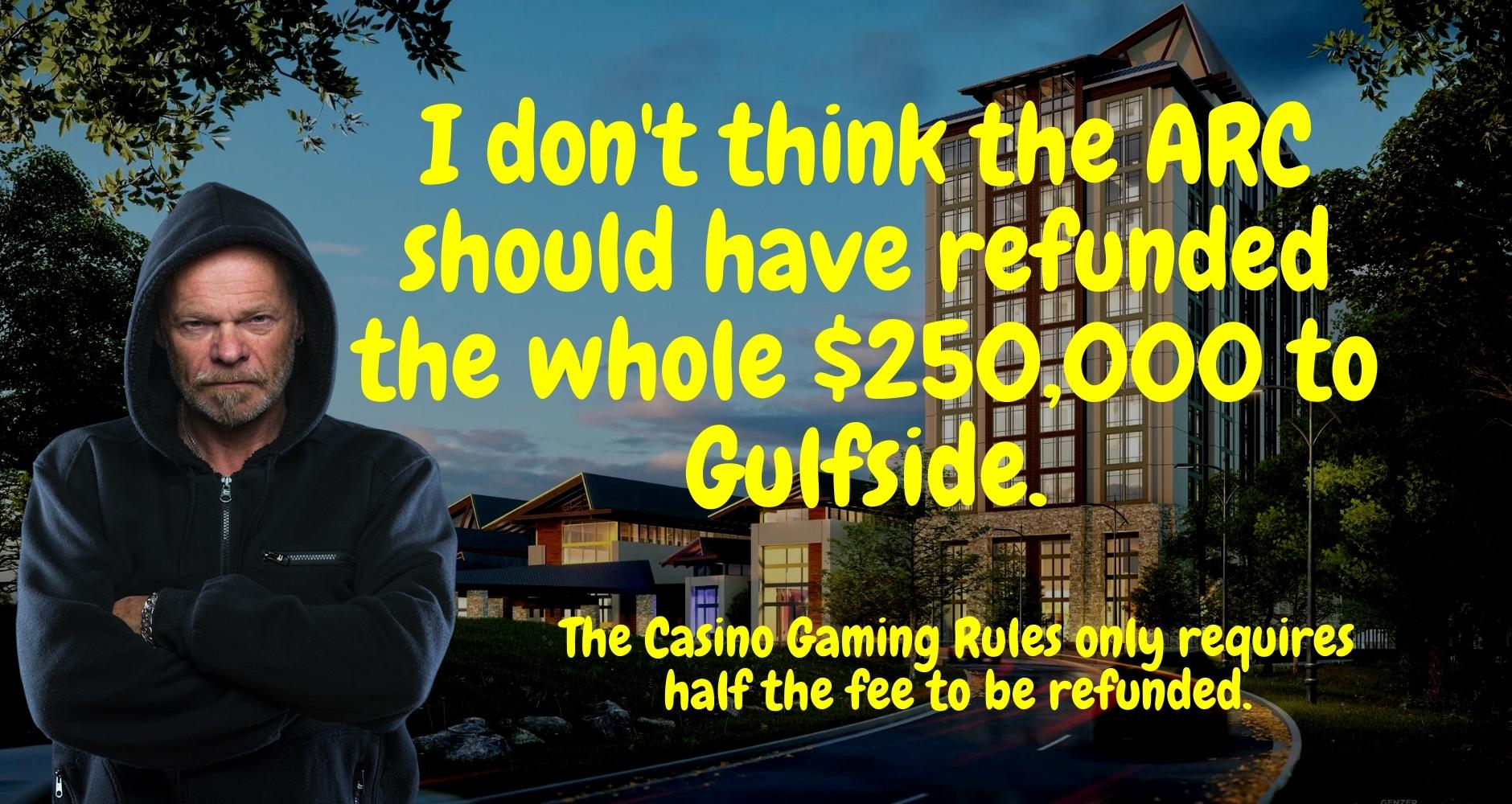 It was a prudent move to return the full amount. It avoids potential litigation from Gulfside on that point. However, returning the whole amount is not covered in the gaming rules, though I do think it comes within the administrative authority of the Commission.